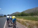 Pascal Glaziou et Rémy Le Clech, deux membres du club des cyclos des Chasseurs de Gourin, viennent de passer une semaine dans le Piémont italien (les Alpes du Sud versant italien). Ils ont parcouru au total quelque 570 km, grimpant de nombreux cols. Ce voyage était organisé par le Cyclo-club de Quimper. « Nous étions un groupe de 40 personnes, 25 cyclos et une quinzaine d'accompagnateurs », explique Rémi. Après un interminable voyage en car (19 heures), les cyclos sont arrivés à Chiosa di Pesio, où ils ont séjourné. « À peine arrivés, le temps de prendre un petit encas, nous avons enfourché nos vélos pour une sortie de 50 km avec une bonne montée de 4 km ou 5 km et une descente dangereuse », raconte Rémi. Le lendemain, c'était 83 km, avec 2.000 m de dénivelé et un col de 1.650 m. Le surlendemain, 107 km avec quatre ascensions, dont une sur 6 km à 12 % - 15 % et un passage à 17 %. « De vraies montagnes russes ». « On a tiré la langue » En milieu de semaine, la journée de repos a été consacrée à une sortie vers la grande ville voisine de Cunéo et la visite de l'abbaye de Staffarda et du château de Racconigi. Le séjour s'est terminé par une étape de 132 km et une vue magnifique sur le vignoble de Barolo et une autre de 101 km. « On a fait fureur avec nos maillots roses de Gourin », rigole Pascal, qui, plus sérieusement, avoue avoir « tiré la langue ». « J'ai déjà fait l'Alpe d'Huez et le Tourmalet, mais ça m'a semblé encore plus difficile en Italie. Il n'y a pas de repères, pas de panneaux indicatifs, c'est l'inconnu. Et ça, c'est difficile ! ». « Je suis plutôt à l'aise dans les bosses d'habitude, mais là, c'est autre chose », confirme Rémi, qui est prêt à repartir. « On est monté haut, il y avait de la neige pas loin, les paysages étaient superbes et l'ambiance dans le groupe excellence ».
