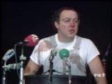 Mort de COLUCHE dans un accident de moto, près de Grasse (Alpes Maritimes), à 41 ans. Un camion lui aurait coupé la route. - Camion en travers sur route. La moto très endommagée, le casque brisé. Le camion démarre pour s'engager dans un camping. Interview du camionneur : il allait vite, il n'a pas freiné. La moto est mise sur le côté de la route par les gendarmes.