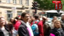 Télévision-Bordeaux-33 les maires contre le projet de la LGV devant hôtel régional d'Aquitaine