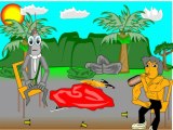 Una pequeña animacion de Los Escolpiones de republica dominicana haiti con sus cascos de plomo y diferentes colores en medio de una isla.