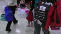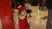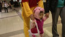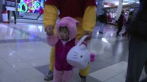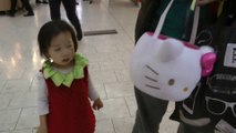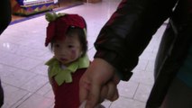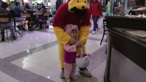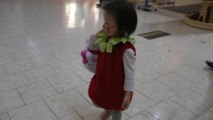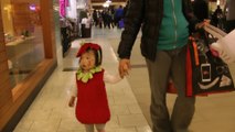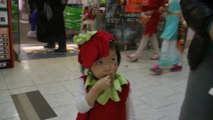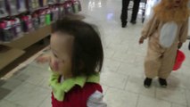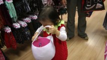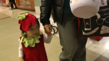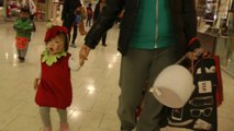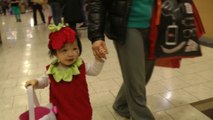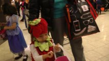 Girl is doing trick or treat at the mall. (f003)