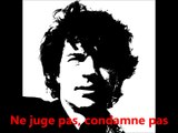 « Tous ces mots terribles qui font des chansons parlant de misère, d’ennui, de prison, ne sont que des leurres chassant nos démons. Bâillonnant la peur, pendant un moment. Chanter, c’est pas vivre, mais c’est l’espérer. Chanter, c’est survivre, quand on est vidé. Vidé de ses illusions, tout nu et tout con. Essoré, déboussolé, cassé, piétiné. Je ne suis ni meilleur ni plus mauvais que vous. Contre vents et marées, envers et contre tout, j’ai chevillé dans le cœur un rêve de bonheur. Un jour nouveau qui se lève chasse mon chagrin. Un geste, un regard, un mot, un ami qui vient, deux arbres dressés dans le ciel, la lune et la nuit Deux amoureux dans un champ font comme leurs parents. Une fille qui revient d’un voyage très loin. Tous ces mots terribles qui font des chansons. »