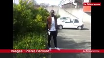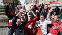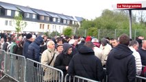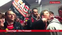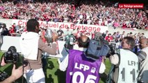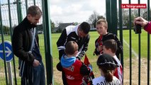 Christophe Gautier, responsable de la communication de l’En Avant Guingamp, a apporté la Coupe de France à la marraine du club Marie Mathurine Roullé, 102 ans, à la maison de retraite de Mûr-de-Bretagne. Les images de Jean Lesoen. Plus d'infos sur www.letelegramme.fr