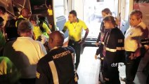 Neymar chega a hospital de maca com gritos de fãs