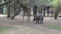 A giraffe kicked a naughty rhino