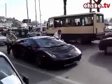 İstanbul'da gazı biten Lamborghini'yi ittirmek