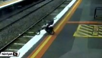Bebek arabası tren raylarına düştü