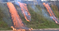 Hawaii Lava Flow Reaches Downhill To Road!
