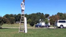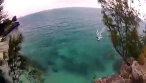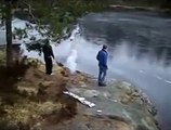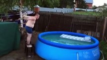 Un débile saute dans une piscine