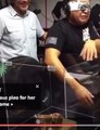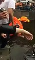 Un homme reste bloqué dans une chaise d'enfant