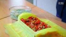 10分钟内搞定的营养午餐-辣酱裙边贝五彩嫩豆腐 1