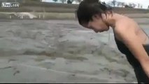 Çamura balıklama atlayan (beyinsiz) Japon kizlar _)) .. Japanese girls jumping in the mud dive _))