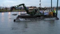 Maden ocaklarının özellikle sulu eleme yapan sistemler için hazırlanan göletlerin zamanla toprak birikimi artmakta bu mil birikimi göletlerdeki su seviyesinin azalmasına yol açmaktadır.Periodik aralıklarla biriken mil çökeltisinin göletlerden uzaklaştırılması gerekmektedir.Teleskopik bomlu ekskavatörün çok sık kullanıldığı bir durumdur.Teleskopik bomlu ekskavatör yine akarsu çalışmalarında olduğu gibi etkin olarak hizmet verebilmektedir