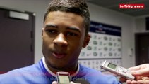 Pour les 32e de finale de la Coupe de France, le club de CFA2 Dinan-Léhon FC recevait les pros d’EAG... au Roudourou. Comme le veut le protocole, les supporters des Rouge et Noir étaient dans le parcage visiteurs. Et ceux des Jaune et Bleu dans la tribune Patrick ! Même si les deux-tiers du stade étaient acquis aux Dinanais, les locaux ont marqué leur territoire en s’imposant 3 à 0. Grâce aussi au Kop Rouge, qui bien que mis en cage a donné de la voix tout au long de la rencontre. Les images de virginie Chenard. Plus d'infos sur www.letelegramme.fr