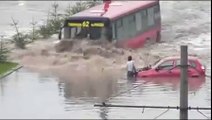 Bus Drives Through Flooded Street - Cool !