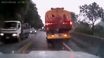 Car near accident when the opposite truck loses its wheel ! Must see !