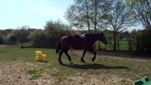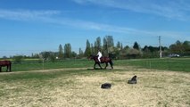 Au galop, il s'agit de ralentir avant la première barre, garder cette allure jus-qu’avoir passé la troisième et accélérer... puis recommencer.