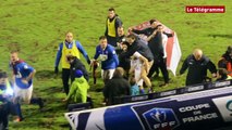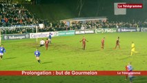 Terribles arrêts de jeu ! À la dernière minute, hier soir, Guingamp a marqué le but qui signifie la sortie de Concarneau de la Coupe de France. 2 à 1 et aussitôt le coup de sifflet final. Devant près de 16.000 personnes, les Uscistes sont sortis la tête haute après s'être âprement battus contre le tenant du titre. C'est la fin d'une belle aventure qui ne demande qu'à être renouvelée l'an prochain. Les images d'Isabelle Calvez. Plus d'infos sur www.letelegramme.fr