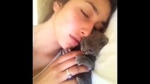 A Cat Mom Hugs Her Cute Kittens Munchkin