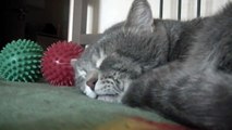 Хозяин мешает кашлем спать коту, и тот ворчит.