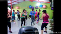 GRUPO DE MUJERES HACIENDO CARDIO PRACTICANDO ZUMBA Y AEROBICS EN EQUIPO DE EJERCICIOS COLECTIVOS RUMBA
