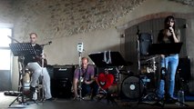 avec Tony à la basse, Murielle au chant & Thierry à la guitare sous le hall du foyer de Couffoulens (11) .