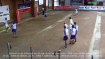 Premier tour du quart de finale aller de la Coupe d'Europe des Clubs 2015 entre CRO Lyon (France) et BK Vargon Rijeka (Croatie) : le tir rapide en double entre Jérémy Micoud / Alexandre Chirat (CRO Lyon) et Leo Brnic / Bruno Kraljic (BK Vargon Rijeka).