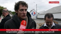 Après deux jours de blocus de la Scarmor, à Landerneau, les agriculteurs ont décidé de lever le camp de la centrale d'achat du groupe Leclerc. La réaction de Sébastien Louzaouen. Les images de Hervé Corre.