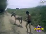 wreslting between donkey and man