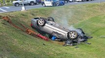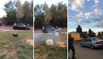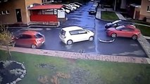 With One Small Hip Check, Car Gets Knocked Over Onto Its Side