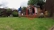 Kid Gets Hit With Soccer Ball and Falls Into Shed
