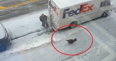Russian Bystander Casually Lifts A Stuck Car Out Of A Snow Rut