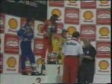 Ayrton Senna celebrates with Fangio