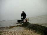 ROBIN ET ANTONIN, LEONBERGS A LA PLAGE.
