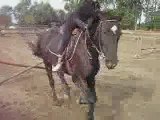 Trophée Total 1er Mai 2008 en D (1m05 1m10) avec New Deal (cheval d'une amie qui me l'a gentiment prêté), mais que je n'avais jamais monté avant, et en plus sur une série plus haute que d'habitude ... Donc au niveau des foulées à l'abord c'était un peu voire très au hasard, ne sachant jamais quelle foulée il allait prendre. Je me suis pris quelques longues (ça me change de Karma qui saute presque toujours dans le pied) et j'ai mal géré le numéro 6, j'ai voulu anticiper la foulée croyant qu'il allait me taper une longue encore mais il a été déstabilisé je crois par mon changement d'attitude et en a retapé une petite et a quand même sauté l'obstacle ... Aïe, méga georgette et chute ! Très ridicule d'ailleurs, je suis trop mdr quand je revois la vidéo, et en fait les 2 étrivières se sont détachées (couteaux de sécurité), ce qui fait que je n'avais plus aucun moyen de me rattraper ... Enfin bon pas de bobo, qq courbatures ! ^^