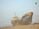 Bateau échoué sur une plage dans le Sahara Marocain