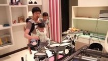 Dad Plays Killer One-Armed Drum Cover While Holding Three Kids