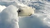 Baby seal playing in the snow