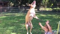 Four year old girl controlling five pit bulls