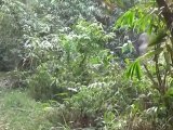 Monkey teaches human how to crush leaves