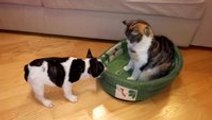 Cat hypnotizes dog