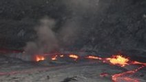 Drum of water into Erta Ale lava lake