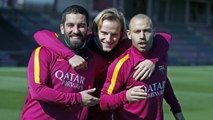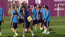 Last FC Barcelona training session before Copa del Rey trip to Valencia