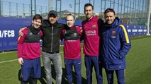 FC Barcelona training session: The team congratulates Messi for his 300 La Liga goals