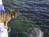 Cat and Dolphins playing together