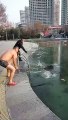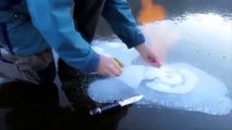 غاز قابل للاشتعال يخرج من تحت الجليد