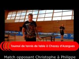 Match de tennis de table opposant Christophe à Philippe