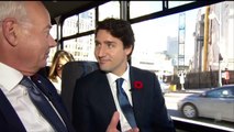 Justin Trudeau and Peter Mansbridge ride the bus to Parlliamen...
