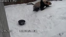 Toronto Zoo's Playful Panda In The Snow