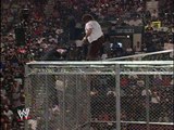 The Undertaker throws Mankind off the top of the Hell in a Cell